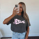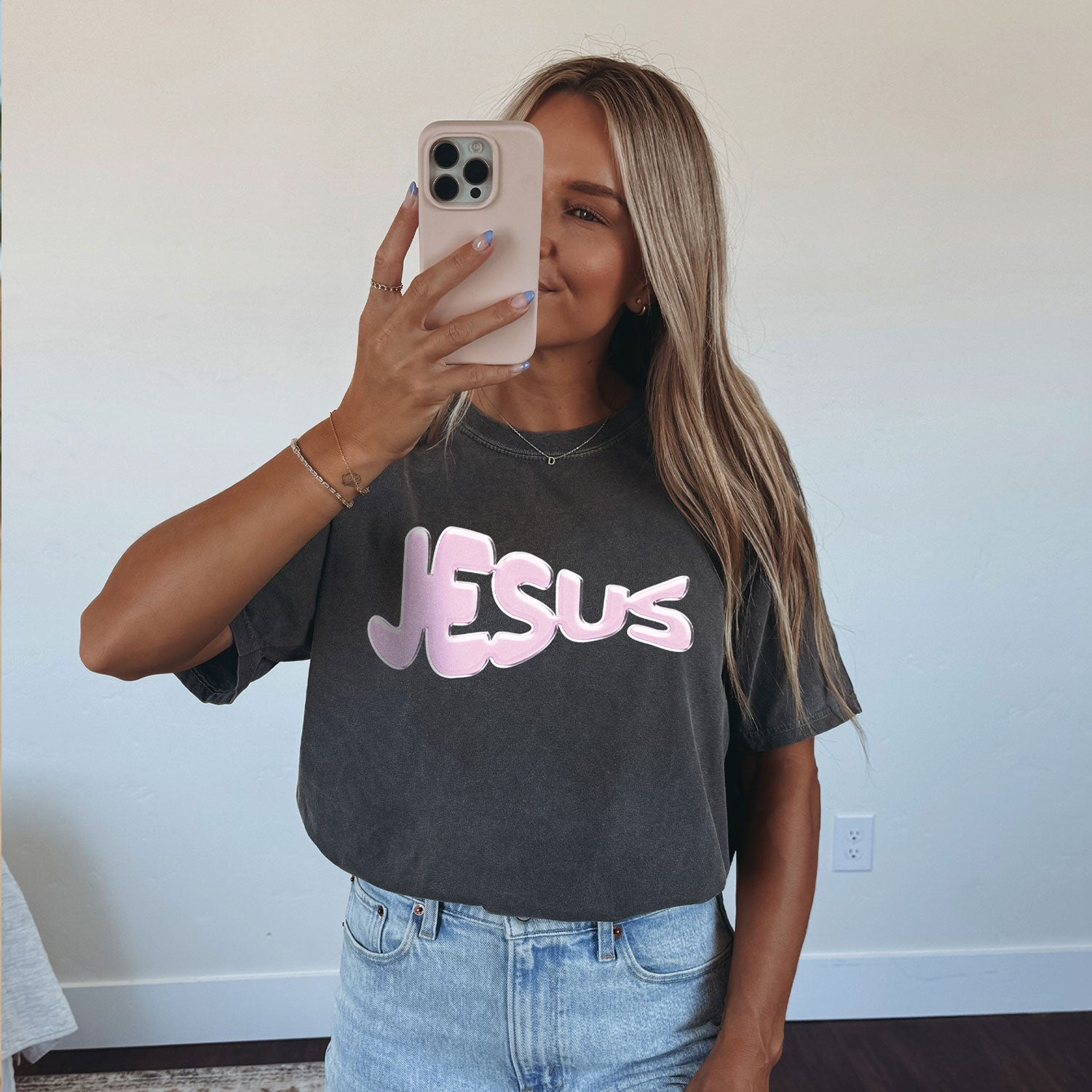 A modern take on a timeless faith symbol.Our Jesus Fish design is printed in a premium pink chrome finish on the Women’s Heavy Faded Tee. True-to-size for a comfortable, everyday silhouette. For a more relaxed or oversize look - go up one size.