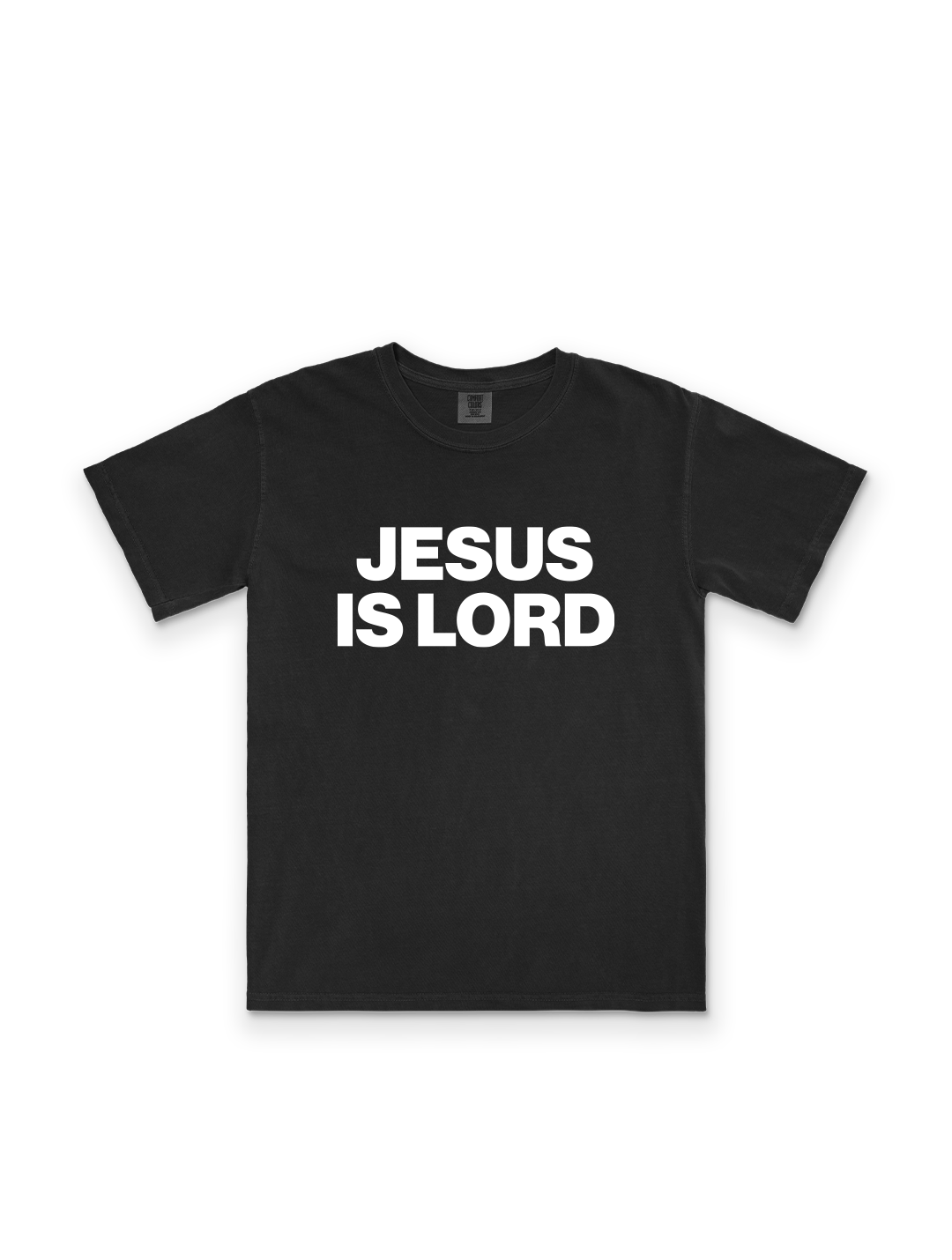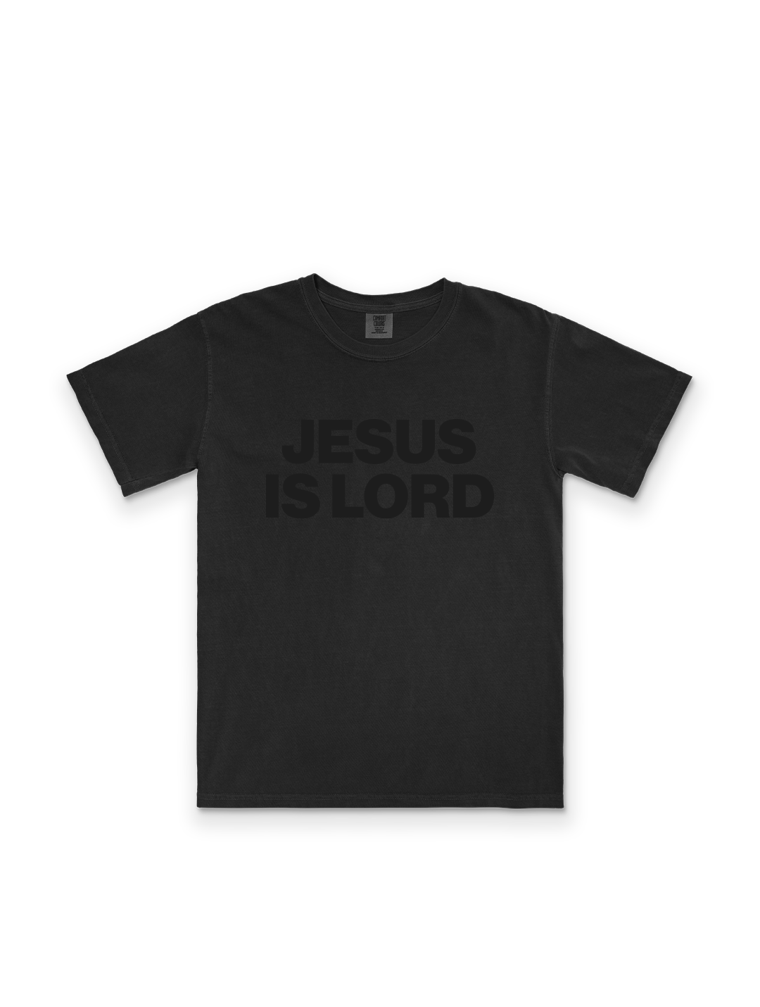 Our Jesus Is Lord Vintage Tee is printed on a washed black tee and comes in two print options: a tonal black print for a subtle look, or a premium white print for contrast and impact.